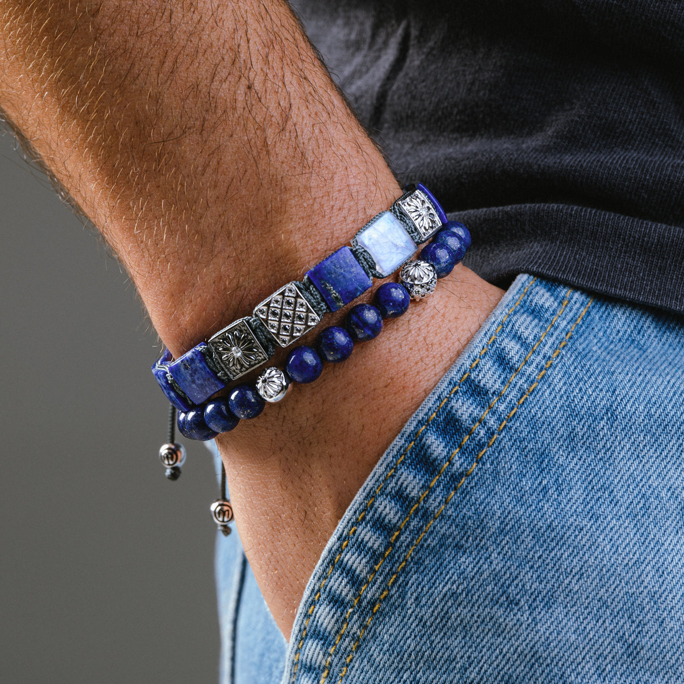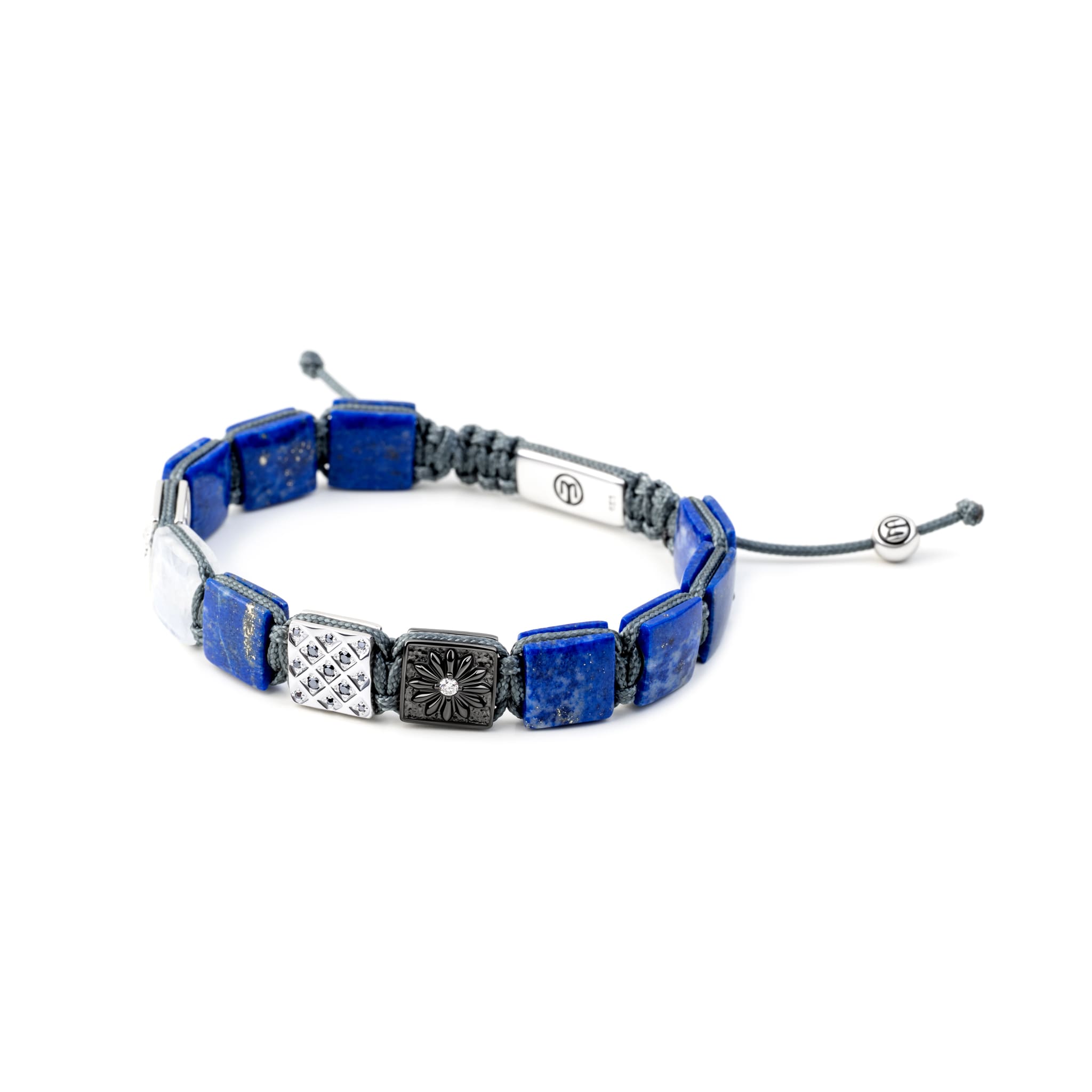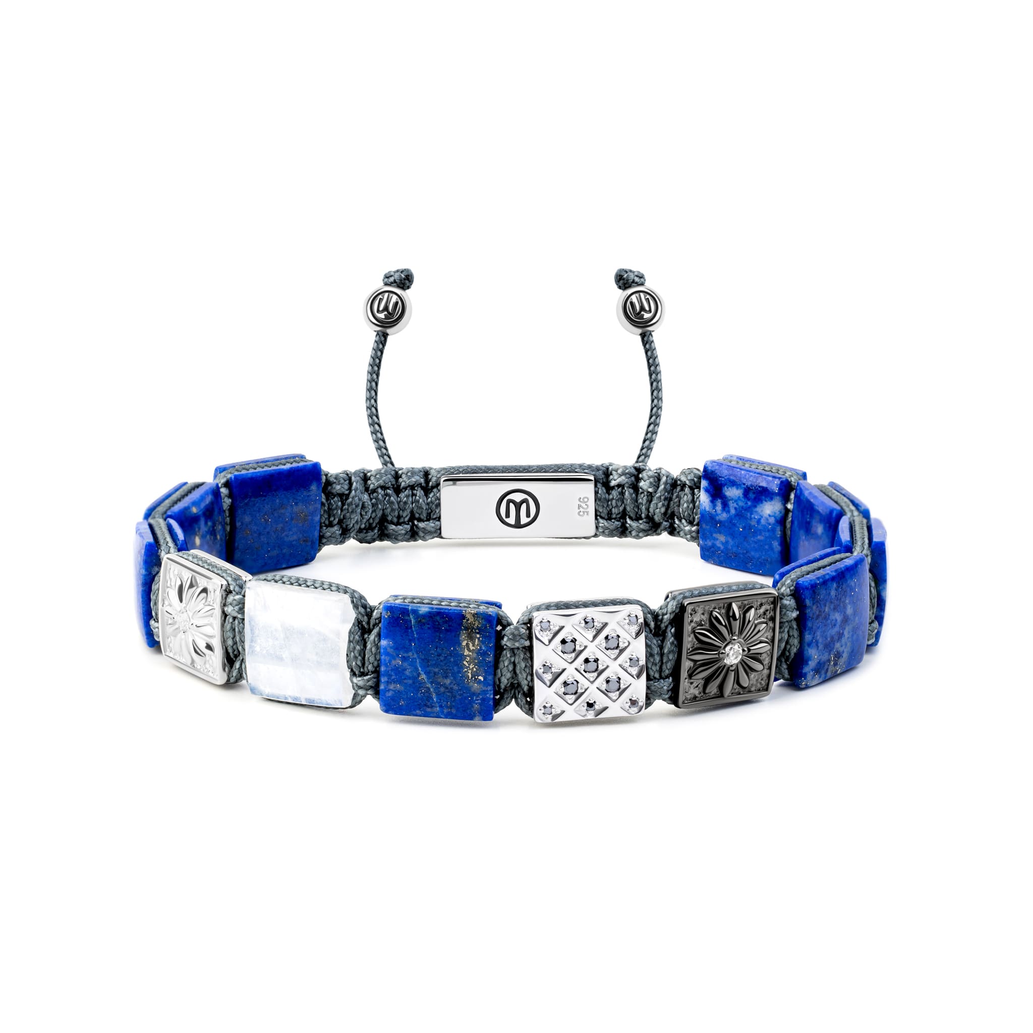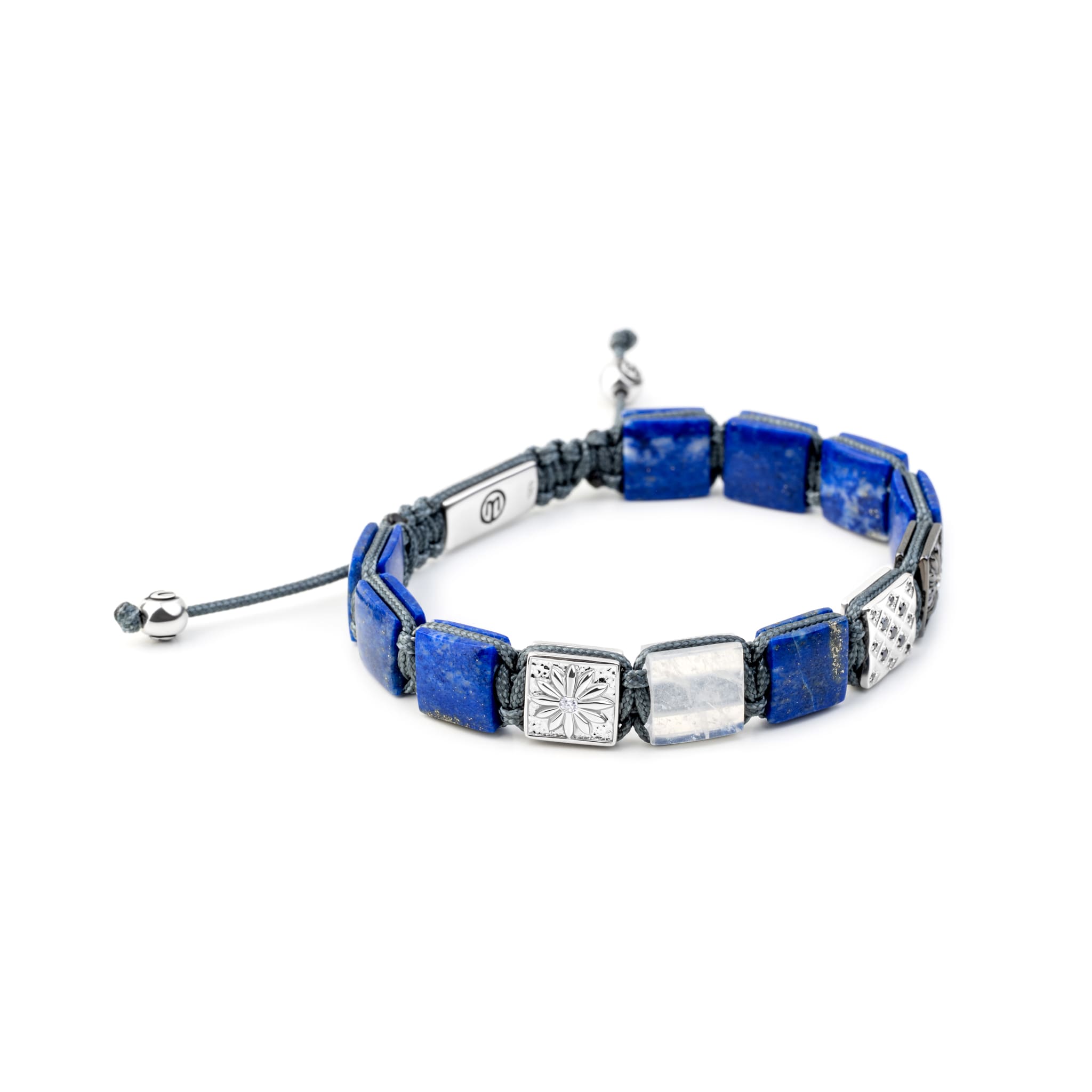 Flat Bead Lapis Lazuli Macrame Bracelet with Silver & Moonstone